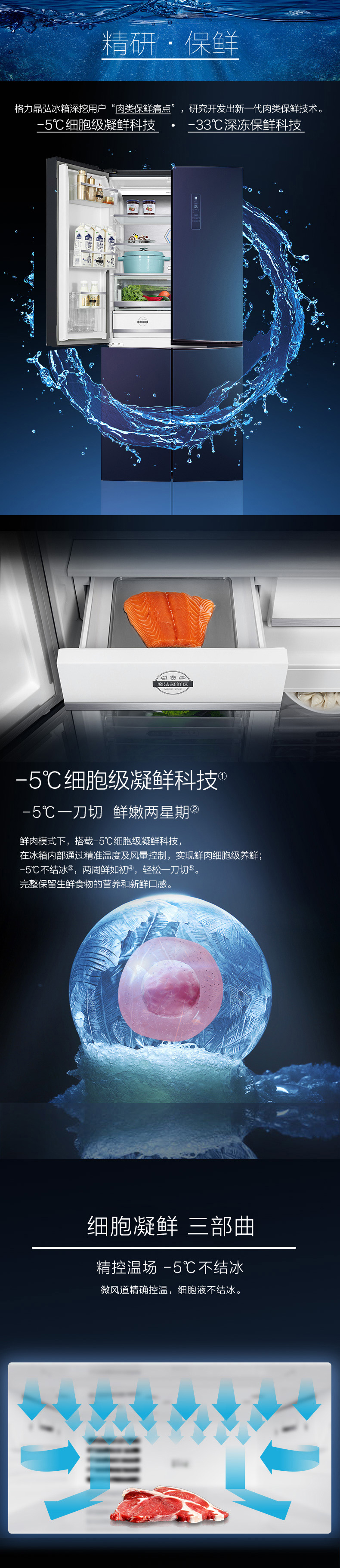 針對每種食材進行精細化分區(qū),定制專屬保鮮艙,涵蓋肉類保鮮、果蔬保鮮、母乳儲存、干貨儲存以及除菌凈味五個維度,確保每一件食材的新鮮儲存
