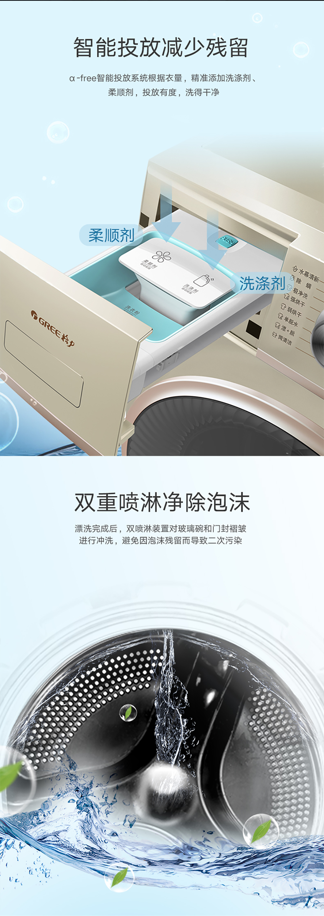 極凈去污,一次洗凈多類污漬;大容量,全家人衣物無需分類分開洗;洗烘一體,即洗即烘即穿.
