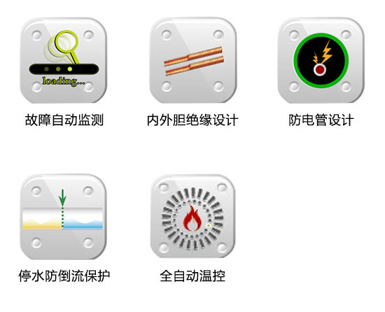 配有漏電開關(guān)保護(hù)、防電管設(shè)計、意外漏電保護(hù)、停水防倒流保護(hù)、超壓保護(hù)等多項(xiàng)保護(hù)功能,讓您使用安全無憂。 |
